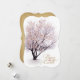 Uma bela árvore com folhas douradas e um leve toque de neve. Um cenário pacífico para as festas de Natal. Um sentimento caloroso do outro lado, "Que a beleza tranquila da estação traga a você profunda alegria e memórias calorosas para guardar ao longo do ano que vem" e espaço para uma foto sob a cópia.