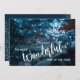 Uma bela árvore de Natal coberta por neve reflete as luzes azuis da noite com as características "A época mais maravilhosa do ano" na frente e seu cartões de natal pessoal nas costas. Selecione Matte para o papel mais pesado e alta definição para melhor qualidade de impressão.