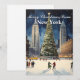 Um cartão de Natal impressionante e de alta qualidade com um design clássico de pôster de viagem vintage da árvore de Natal do Rockefeller Center e pista de patinação no gelo. A maneira perfeita de enviar votos de Natal elegantes. Ideal para cartões de visita pessoais ou corporativos. Ótimo para moradores de Nova York, viajantes ou fãs de arte americana clássica.