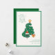Celebre a alegria do Ano Novo da Cobra com este cartões de natal divertido e moderno, com um cobra verde em forma de árvore de Natal, vestindo um chapéu de Natal e uma estrela, sobre um simples fundo branco contemporâneo, coberto de um belo confete. Este cartão é um presente excelente para as famílias que celebram o Natal e o Ano Novo Lunar.