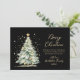 Elegante, preto moderno e Dourado caligrafia Script Watercolor Árvore de Natal Não Foto Cartões de natal de Natal. Este modelo de cartões de Natal festivos apresenta uma árvore de natal de aquarela com bolas de ouro decorativas e confete e um texto de saudação de "Feliz Natal" que é escrito num tipo de letra bonito, escrito à mão, em ouro a preto. No verso, o padrão da árvore de natal cinza-cinza em fundo preto. Esta Cartões de Natal Personalizados Festivos é uma forma excelente de lembrar aos entes queridos que vocês estão pensando sobre eles nesta temporada de festas de inverno.