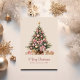 Este charmoso cartão de Natal de dois lados apresenta uma linda árvore rosa decorada cercada por presentes macios, colocados contra um delicado fundo bege. A parte traseira inclui uma mensagem personalizável adornada com uma pequena ilustração de arco rosa, adicionando o toque perfeito de acabamento. Ideal para aqueles que amam vibrações de férias femininas e gentis. Personalize para seus entes queridos e torne seus Cartões de natal especiais.