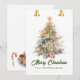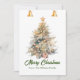 Cartão De Festividades Árvore de Natal em aquarela com sininhos,