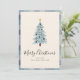 Envie votos calorosos de férias com este cartão de Natal minimalista e elegante, apresentando uma árvore de Natal em estilo escandinavo em tons suaves de azul-cinza. O fundo xadrez sutil adiciona um toque de sofisticação aconchegante, enquanto a saudação simples "Feliz Natal" em uma fonte de letra divertida completa o visual limpo e moderno.