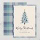 Cartão De Festividades Árvore de Natal Mínima Xadrez Cinza Azul
