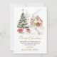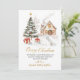 Elegante Moderno Botânico 'Feliz Natal' Escreve Cartões de natal Não Fotográficos. Estes cartões de Natal festivos exibem uma impressionante design de aquarela apresentando uma cena serena de inverno de neve com uma charmosa casa de vilarejo, uma bela árvore de Natal decorada, e presentes no primeiro plano. A saudação do "Feliz Natal" é graciosamente escrita à mão na caligrafia dourada, acrescentando um toque sofisticado ao fundo branco limpo. O verso é enfeitado com um delicado padrão de flocos de neve dourados contra um pano de fundo verde poeirento, que melhora o sentimento festivo. Perfeito para a personalização, esses cartões de natal personalizados são uma maneira elegante de enviar desejos calorosos à família e aos amigos nesta época de Natal.