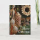 Foto de uma árvore de Natal rústica com bolota, pinho, coroa e ornamentos estelares. O tema da cor são tons bonitos e ricos de ouro, marrom e bronze. A frente diz Feliz Natal e a dentro diz Desejar-vos muita alegria e felicidade nesta época de Natal. Personalize a frente e o dentro com sua própria mensagem, se desejar. Este cartão de ornamento de feriado é excelente para transmitir a festividade do Natal.