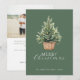 Cartão de Natal simples e rústico com árvore em aquarela em um cesto com decoração. Combinado com tipografia moderna e de roteiro e sua foto favorita.