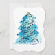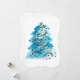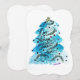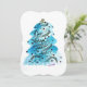 Aquarela de árvore azul com alegria, esperança, paz, amor em cartão plano.
