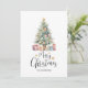 Torne seus cartões de natal especiais com este cartão de Natal personalizado com uma delicada cor d'água, árvore de Natal e belamente presentes embrulhados por baixo. A elegante mensagem "Feliz Natal" é complementada pela opção de adicionar seu nome ou nome de família, criando um toque quente e significativo.