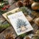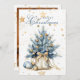 Cartão De Festividades Árvore Natal Dourada Caligrafia Azul