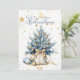 Elegant Merry Christmas Tree Gold Blue WatercolorCriado por Emma Woods