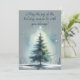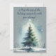 Este cartão apresenta uma árvore solitária, desenhada no estilo de aquarela, com um brilho iluminador que envolve a árvore. Esta árvore irradia uma sensação de calma e paz, perfeita para a época de Natal e durante todo o ano. Este design é colocado contra um fundo azul claro, com estrelas espalhadas à distância. As saudações são escritas em azul escuro, que podem ser alteradas pelo cliente.