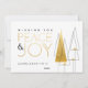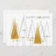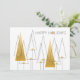 Este cartão de cartões de natal estilizou as árvores de Natal Art Deco e as saudações Feliz Feriados na frente. A parte de trás do cartão lê Wishing You Peace & Joy e pode ser personalizada com nomes e uma data. As cores gráficas são douradas e pretas.