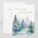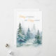 Árvores de inverno em aquarela em tons de verde combinadas com caligrafia e tipografia moderna cartão de Natal.