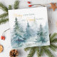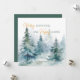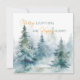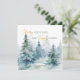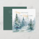 Cartão de férias com árvores de inverno em tons de verde em aquarela, combinado com caligrafia e tipografia moderna.