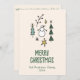 Se você está procurando por um simples cartão de Natal minimalista, bonito e facilmente editável. Este é perfeito para você. E como vocês veem a design apresenta uma mão verde feita e desenhada árvores de Natal, estrelas e boneco de neve branco, com a mão verde escrita tipografia de MERRY CHRISTMAS. E seu nome familiar e ano sob ele. E no fundo você tem uma saudação de Natal personalizável e dentro de fotos de família uma mão desenhada em verde.