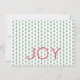 Padrão de árvore de Natal em aquarela em vermelho e verde suave em fundo branco com JOY personalizado ou em vermelho suave. Fácil personalizar texto, cor do texto, fonte. Borda de destaque na parte de trás para sua mensagem de feriado opcional ou foto. Logotipo da Zazzle na parte inferior pode ser excluído. Ótimo para qualquer cartão de Natal para qualquer casa, escritório, escola. Festivo, Atemporal, cheio de Alegria. Misture e combine toda a coleção de Natal / Coleções de Feriados da TMCdesigns.