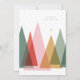 Um design de feriado moderno e minimalista com simples árvores de Natal triangulares sobrepostas em cores pastéis suaves. Flocos de neve caem suavemente ao fundo, criando uma atmosfera de feriado pacífica.