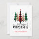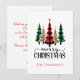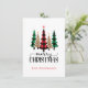 Cartão de Natal com xadrez vermelho e preto e árvores de Natal xadrez búfalo verde e preto na frente com um espaço para o seu nome. A parte traseira do cartão tem uma mensagem que você pode editar.