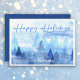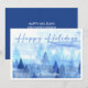 Cartão De Festividades Árvores de Pinheiro em Aquarela Azul Natal Feliz F