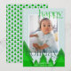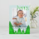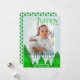 Deseje Felizes Férias de uma maneira moderna e brilhante com este cartão de Natal de árvore geométrica. Sua foto é emoldurada em uma borda branca sobre um fundo azul gelo pálido. Uma floresta de inverno de árvores com tons de verde misturados adiciona um detalhe único. Letras festivas com floreios adicionam ao visual diferenciado. Personalize com uma mensagem breve e seus nomes, e o ano. O verso do cartão apresenta um padrão de árvore em uma paleta de cores correspondente.
