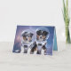 A dog Valentine's Day card featuring an Australian Shepherd couple in a spaceship going to the moon.