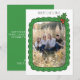 Enquadre sua memória favorita com este cartão de foto escovado caprichoso e alegre! O design apresenta sua foto de família preciosa cercada por uma moldura verde escovada e divertida, acentuada com um ramo clássico de azevinho e frutas. Essa borda única dá ao cartão um charme rústico, caseiro e ligeiramente retrô. A saudação tradicional "Feliz Natal" completa esse cartão alegre, tornando-o uma maneira memorável de enviar paz e calor nesta época de festas. Personalize facilmente com sua foto, nome da família e ano.