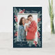 Cartão de Natal elegante com a sua foto favorita na frente emoldurada por bagas de azevinho em aquarela vermelha com galhos de pinheiro e folhagem verde sobre um fundo azul-marinho. "Felizes Festas" é exibido no topo em uma elegante fonte caligráfica branca. Personalize a frente do cartão de Natal botânico adicionando seu nome e o ano. O interior do cartão de Natal dobrado contém sua mensagem personalizada em texto azul-marinho. A parte de trás do cartão apresenta uma foto adicional. Projetado para combinar com nossa coleção de Natal Holly e Evergreen.