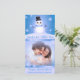 Personalize este adorável cartões de fotos "Natal de 1rua do bebê" com sua própria foto e nome do bebê! Design apresenta um bonitinho bonitinho bonitinho de chapéu, com bochechas rosadas e um cachecol azul. Os flocos de neve adicionam um toque de vinho decorativo.