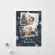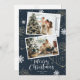 Foto azul moderna Cartão Feliz de Natal com flocos de neve e presentes em fundo azul. Personalize facilmente este cartão de feriado com as suas fotografias e texto.