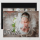 Upload 4 of your favorite photos of your new bundle of joy with this gorgeous birth announcement. One photo and baby details and a short message can go on the front, and a longer message and your signature or sign off can go on the back, or you may customize in your own way. People will be over-the-moon to see your new baby in so many beautiful photos, and this design can be framed and saved as a keepsake.