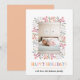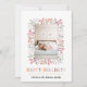 Borda de baga e folha de pêssego Feliz Natal não tradicional foto Cartão de Natal. A frente apresenta uma moldura feita de bagas e folhas, o texto "Felicidades" em uma fonte colorida e sua foto. A parte de trás é de cor pêssego sólida.