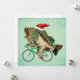 Pintura revista do grande baixo da boca Andando Uma Bicicleta enquanto vestia um chapéu de Papai Noel