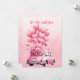 Tão lindo em todo rosa. Um carro cheio de flores cor-de-rosa, balões e fundo com delicado texto rosa "Seja Meu Namorado"
