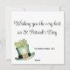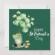 Cartão do dia feliz de São Patrício com balões verdes de Brunswick, trevos e um chapéu de duende e moedas de ouro. Personalize o verso deste cartão com seus votos para o dia de São Patrício ou seu poema irlandês favorito. Há espaço para sua assinatura e data também!