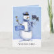 Este cartão de férias para policiais e agentes da lei apresenta um boneco de neve usando um chapéu de policial e um cachecol xadrez azul carregando uma bandeira americana da linha azul fina e segurando um sinal que diz "Feliz Natal". Personalize com seu nome. Criado pelo renomado artista Tim Coffey.