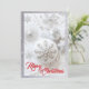 Espalhe a alegria de férias com o nosso cartão de Natal glamouroso, com ornamentos brancos intrincados e enfeitados com rochas. A mensagem "Feliz Natal" transmite os seus desejos calorosos para uma estação cheia de amor e alegria. O brilho adicionado das rotinas eleva o design, fazer este cartão como uma escolha sofisticada para compartilhar seus desejos alegres com a família e os amigos. A carta se inverte para mostrar uma inspiradora mensagem de Natal "Esta é a estação e melhores desejos para o ano novo" transmite seus desejos calorosos para uma estação cheia de amor e prosperidade. Ou escreva o seu próprio fazer, este cartão é uma perfeita guardiã para partilhar os seus alegres desejos com a família e os amigos.