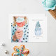 Ilustração de um batido de leite em uma jarra de mason azul coberta com confeitos em forma de flocos de neve, marshmallows e biscoito de Natal em forma de floco de neve. O texto diz "Natal Lácteo". Personalize o nome, ano e foto.