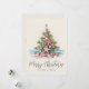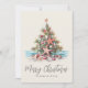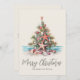 Celebrate the holidays with a touch of coastal charm with this shell and starfish Christmas tree holiday card. The design features an off-white background on both sides, with the text in a mix of gray and black fonts for a clean, elegant look. The Christmas tree is made of seashells and starfish, topped with a starfish and set on a base of sand and soft teal ocean waves. The rustic watercolor style adds a relaxed, beachy feel, while the blend of simple and script fonts keeps it casually elegant. Perfect for anyone who loves tropical or seaside holidays, this design brings the warmth of the coast to your seasonal greetings. Available as a printed card or a downloadable digital version.