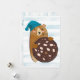 Urso bonito vestindo um chapéu de inverno com um biscoito chocolate-chocolate neste "da cozinha" ou cartão de Natal "caseiro com amor" para dar sua lista com doces do seu forno.