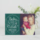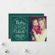 "Baby it's Cold Outside" O cartão de saudação de Natal design apresenta uma fonte moderna de script branco com floco de neve e sotaques estelares em um quadro decorativo com texto personalizado de "Desejos mais quentes" que pode ser personalizado. O fundo verde esmeralda pode ser modificado. Design é perfeito para as famílias que celebram o primeiro Natal do bebê recém-nascido!