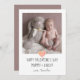 Um cartão com fotos de bebê Namorados giro para mamães e pais, com bebê e coelho recheado. A melhor mamãe e pai na parte traseira da placa. Adicione a foto do seu bebê. De bebê em sua primeira Dia de os namorados. Para pais novos.