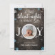 Trocamos noites silenciosas por um monte de alegria. A fotografia é personalizável junto com o nome da família. O design é uma madeira rústica com flocos de neve azuis e brancos e galhos de pinheiro ilustrados. Parabéns no seu pequeno pacote de alegria.