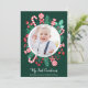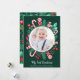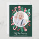 Este primeiro cartão de natal de manutenção de bebês apresenta folhagem de cor d'água pintada manualmente, canetas doces de menta pimenta e doces. Este cartão é ideal para uma família que tem um novo bebê ou que é a primeira vez que os pais o fazem, e gostaria de o celebrar nesta época de Natal. Na frente você pode adicionar sua própria foto e mudar o texto e no verso você pode escrever sua própria mensagem de Natal. Veja toda a coleção correspondente.
