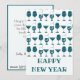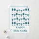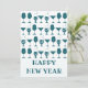 Celebre o Ano Novo de 2025 com estes cartões de felicitações divertidos e festivos para a Véspera de Ano Novo. Estes cartões de Ano Novo retrô apresentam um padrão divertido de copos de coquetel em uma cor azul esverdeada. O texto diz “FELIZ ANO NOVO” em um texto personalizável da moda. Personalize o verso com uma nota e sua assinatura.