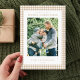 Crie os seus cartões de Natal personalizados com uma das suas fotografias familiares favoritas, juntamente com um nome de tipografia minimalista personalizado e um ano num fundo de xadrez de gingham bege bonito.