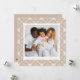 Cartão festivo quadrado com foto da sua família, em branco, com um fundo com padrão de floco de neve branco e bege, nórdico. Personalize o cartão de Natal nórdico do floco de neve com sua saudação personalizada e seu nome familiar em letras bege. O cartão se reverte para exibir sua mensagem pessoal.