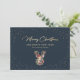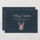 Azul e ouro personalizados Cartão de Natal Merry com silhueta de renas de ouro e vinheta de neve. Um falso cartões de natal de roteiro de folha de ouro adiciona um olhar mais festivo a este cartão de feriado. Personalize facilmente este cartão de feriado azul com o seu nome de família e texto ou personalize-o para criar um belo cartão de feriado profissional. O efeito da folha de ouro só é simulado no trabalho de arte. Mais opções de cores disponíveis.