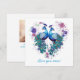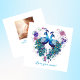 Um lindo par de pavões fazendo um coração com flores e plumas de penas da cauda. Modelo de texto "Amo você, mamãe!" abaixo do design na frente, enquanto um modelo de foto e uma linha de assinatura no verso.